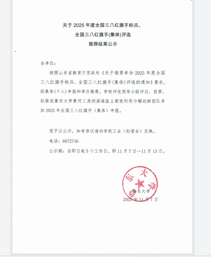 2025年度全国三八红旗手(集体)评选推荐结果公示