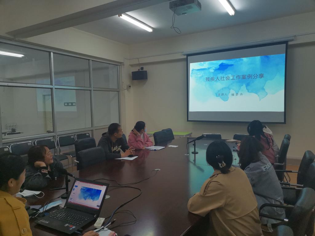 主讲人向大家介绍了残障人士的康复与融入的相关现状,并通过播放残障人士的相关视频,让同学们深切了解到社会对残疾人社会工作的急迫需求。随后,同学们针对多种残疾人社会工作的侧重点展开激烈讨论。同学们深知对于残障人士来讲,残疾不仅意味着社会生活的不便,社会对个人会造成更大的心理压力,因此在残疾人社会工作的实务活动中,我们更应该注重服务对象的心理状况,才能更好的帮助他们重新融入社会。