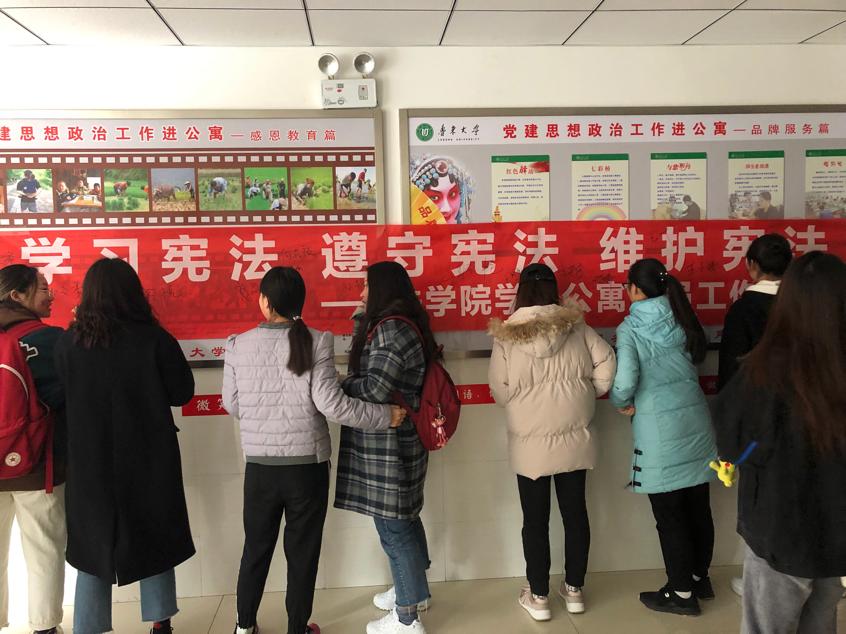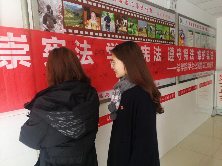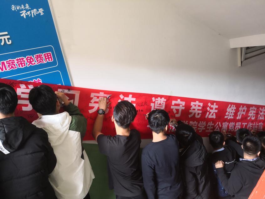 活动中,党员工作站成员向同学们讲述有关宪法的基本知识和学习贯彻实施宪法的重大意义,引导同学们积极学习宪法,培育宪法意识,弘扬宪法精神。同学们庄重地在写有“尊崇宪法、学习宪法、遵守宪法、维护宪法”的条幅上签上自己的姓名,表示要自觉成为宪法的忠实崇尚者、自觉遵守者、坚定捍卫者。同时,还邀请了部分同学参与了“宪法我想对你说”的视频录制,同学们用心声表达了对“学宪法讲宪法”的理解和坚定维护决心。通过活动,进一步营造了学宪法讲宪法的浓厚氛围,为法治校园、和谐校园的建设贡献了一份力量。