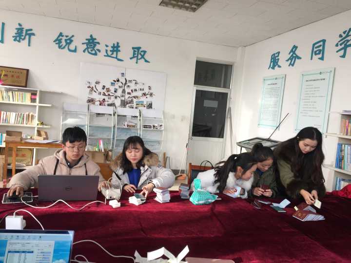 12月9日上午,法学院学生会生活部全体干事在部长的领导下于五餐四楼进行了发放2017级新生学生购票优惠卡与学生证贴磁条的工作。