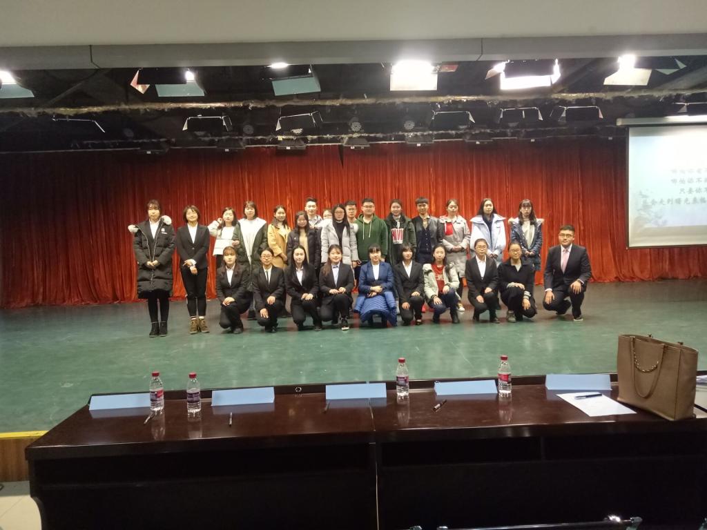 在第一轮,15名选手根据题目各抒己见,用洪亮的声音表达自己内心的想法;第二轮,各位选手通过自己抽到的题目来即兴发挥,以此考验学生临场应变能力。最终,通过两轮的比拼,冠军归属了法学院的张晨选手,比赛结束后,嘉宾评委和比赛选手合影留念。
