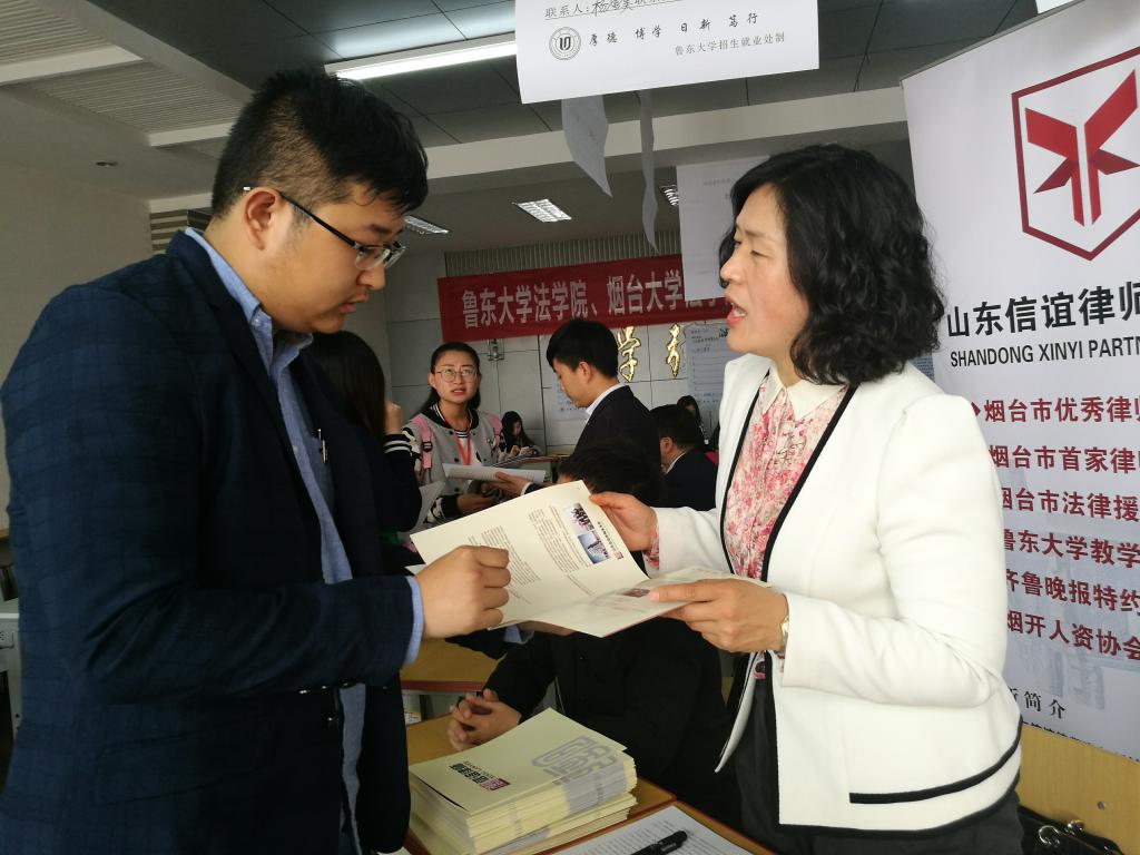 期间,鲁东大学招生就业处处长王全文、副处长吕海航以及我院党总支书记王若罡,副书记曲志钢来到现场,细致询问了前来招聘的律所的信息,并与毕业生就就业问题开展了深切交谈。在招聘会现场,气氛良好,秩序井然,应聘者积极与招聘人员交流,主动了解用人单位的情况。