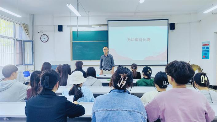 比赛结束后,学院团总支书记郝教谊对本次比赛进行总结,对各位参赛选手的精彩表现予以肯定,鼓励同学们要从身边做起,从日常生活做起,了解宪法、尊崇宪法、弘扬宪法精神,增强法治观念,领会宪法的精神实质,规范自身行为。(撰稿:孔雪 安思奇 审核:鲁守栋)