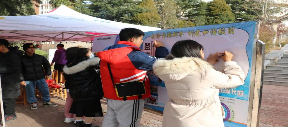 此次活动将近期查宿收缴的违禁品逐一展示,在工作人员的指引下,同学们有序参观了各类宿舍违禁品。期间,工作人员还对违禁品的种类及违规使用带来的危害进行了详细讲解。活动结束后,同学们在横幅上签字留念,纷纷表示会督促身边朋友遵守宿舍规章制度,全力消除各种安全隐患。