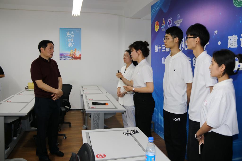 本次比赛得到了校领导的高度重视,在决赛现场,校党委书记徐东升对“新‘识’代——边疆地区社工站建设模式”项目进行了聆听,通过与项目团队成员和指导教师的详细交谈,深入了解了新“识”代项目内容。徐东升指出,这是一个有情怀,有价值的好项目。130余人的入疆,指导老师从始如一的坚守,学生们代代相传的精神,令人十分感动。持续润疆,需要团队青年们赓续润边精神血脉,凝心聚力共担使命。边境地区社工站模式的建设,凝聚了青年人不计个人得失,胸怀祖国和人民的意志。在边境百姓们的眼中,团队作为内地人深入边疆所做之服务,让百姓想到的,是党和国家的支持关怀。团队要做连接内地和边境地区的使者和桥梁,将党和国家的温暖传递给边疆地区人民。在交谈过程中,徐东升了解到,以杨蕾、董欢、周盈、张猛为代表的团队成员们扎根边陲热土,怀揣建设祖国梦想,挥洒热血青春,对这些成员作出了高度肯定,表示他们用自己的实际行动兢兢业业地为西部的建设添砖加瓦的行为令人赞叹,兴边福民,需要这一代青年,立鸿鹄志,不畏坎坷,勇立助力民族团结和铸牢中华民族共同体意识的时代潮头。