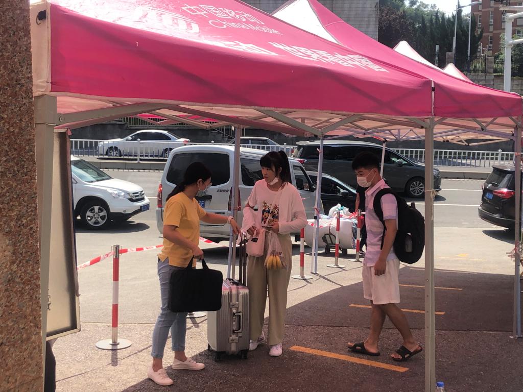 (二)高效运作,实现“处危而不乱”。做好重点人群情况摸排工作,对来自中高风险地区、境外、乌鲁木齐和喀什的学生,采取“合理区分、及时劝阻、措施得当、应检尽检”的方针,全方面做好返校学生的健康监测。畅通与校医院的协作渠道,形成“发现----处置”的联动机制,及时上报师生的异常情况和风险点,转交校医院进行专业处置。组织师生党员组成“学生抗疫先锋志愿服务队”,对返校学生进行体温检测,查验健康码,并及时疏导人流,避免人员聚集,同时配备解暑药物,预防学生中暑。